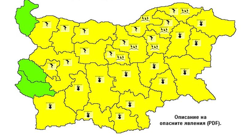 Предупреждение за гръмотевици е валидно за областите Монтана, Враца, Плевен, Ловеч, София-град и София-област. В тези области около и след обяд ще се развият гръмотевични бури.