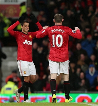Уейн Рууни и Хавиер Ернандес водеха атаката на Манчестър Юнайтед, Крис Смолинг и Фил Джоунс бяха централни бранители, докато Нани, Андерсон и ветеранът Райън Гигс също започнаха за домакините. Голмайсторът на "червените дяволи" Робин ван Перси остана на резервната скамейка.