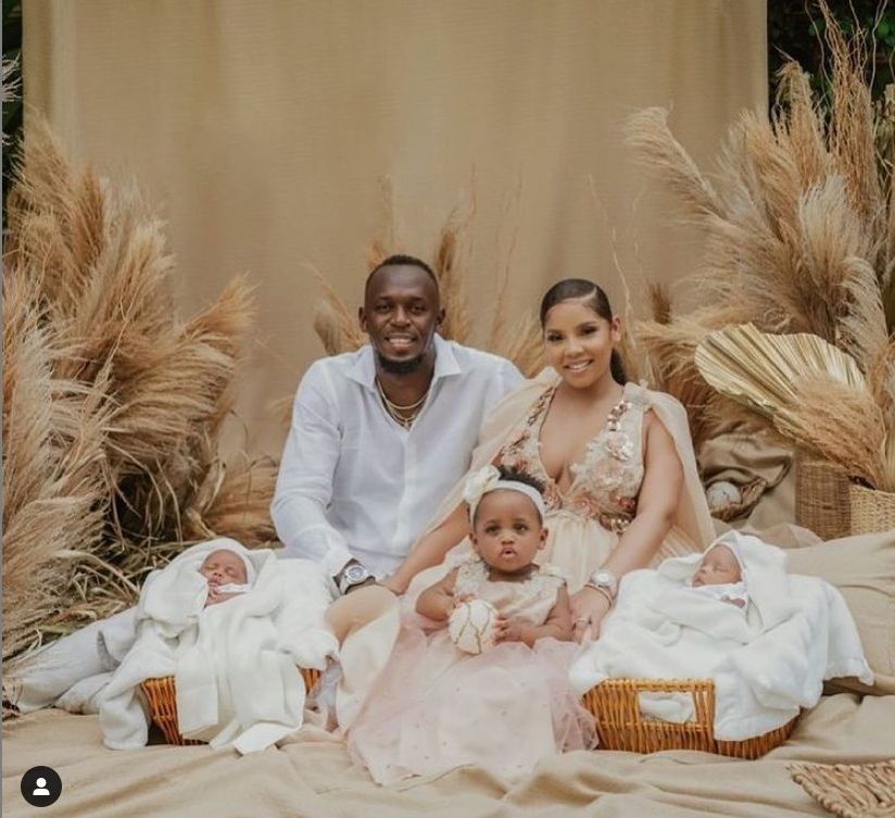 Болт сподели снимка с приятелката си Каси Бенет, едногодишната им дъщеря Олимпия и новородените синове. Юсейн обаче не посочи точната дата на раждане на близнаците.