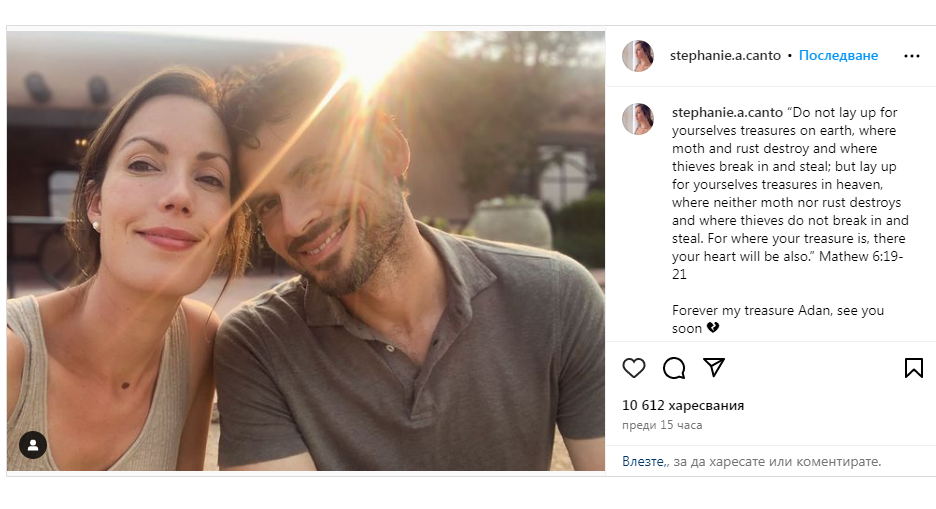 Съпругата на Канто Стефани Ан публикува снимка с него, към която добави пасаж от Библията.