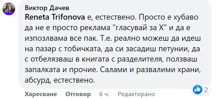 Дачев обясни в коментарите, че става дума за дело на ГЕРБ, които взимали торбичките им.