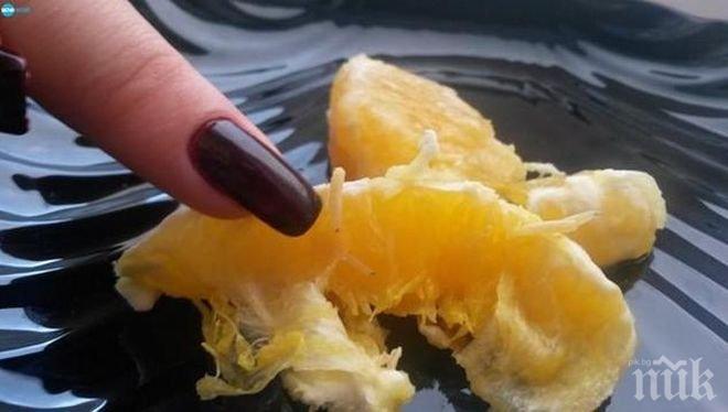 Тези портокали са за ракия, червеите са бонус - безплатно мезе, шегува се друг зрител. Ужасно, и аз купих такива портокали с червеи от голям магазин, добавя трети гражданин.
