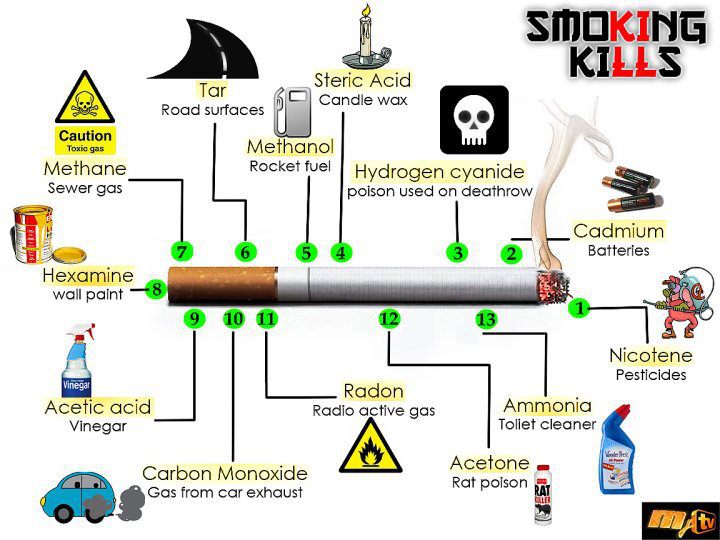 5. Не на цигарите. Безспорно е, че цигарите вредят много. Това което не знаете, е че за производството на цигари се използват над 500 токсични химикала. Било то за по-добър вкус, по-бавно горене, напояват филтрите и още 497 неща :D