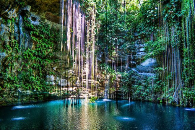 Някога капище на бог Чак, Ик Кил се намира на 26 м под морското равнище, а дълбочината на водите му достига 42 м. Отворът към земята на това сеноте (вид карстов кладенец или езеро) е с диаметър 61 м. През него, за да стигнат до водите, туристите се спускат по каменна стълба, от която могат да се любуват на прекрасните му тераси.