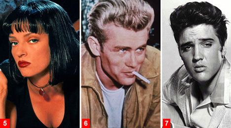 На 5-то място се нарежда черното каре на Ума Търман в "Криминале", на 6-то място е великият Джеймс Дийн в "Бунтовник без кауза", а на 7-мо Елвис Пресли в "Затворнически рок"