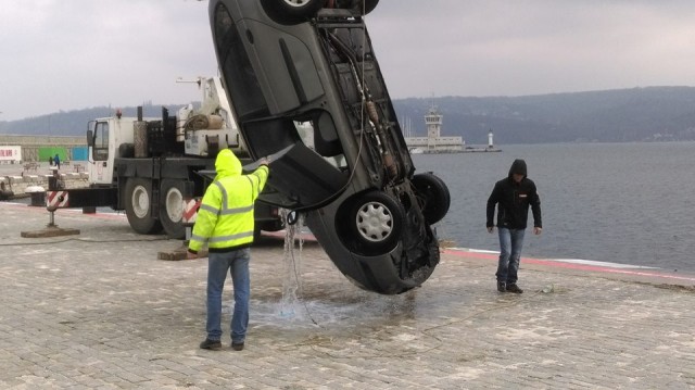 25 минути вадят от морето колата, която сама падна във водата на Морската гара във Варна (СНИМКИ)