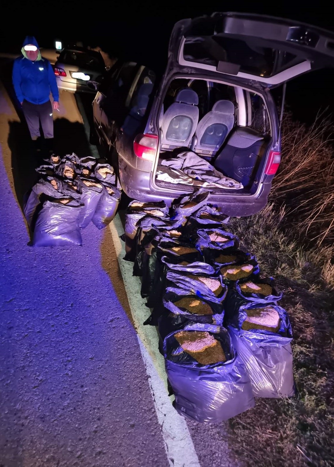 В хода на проведените процесуално-следствени действия в колата са намерени 30 броя полиетиленови чували, съдържащи нарязан тютюн без акцизен бандерол. Общото количество на иззетия тютюн е 300 килограма, за около 60 000 лв.