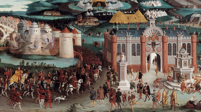 Когато Хенри VIII и Франсоа I организират съвместна среща през 1520 година, първоначалната им цел била да заздравят приятелските отношения между Англия и Франция. Онова, което се случва обаче било състезание под формата на банкети. В продължение на две седмици и половина кралете се опитват да се надвият, организирайки празненства с много алкохол, стрелби с лък и танци. Имало най-различни палатки и павилиони, месо от над 4000 агнета и фонтани от вино. Въпреки скъпите празненства, за които много хора предполагат, че буквално са изцедили хазните на двете нации, те не успяват да запазят добрите чувства помежду си. През 1521 година Англия и Франция отново са от двете страни на войната.