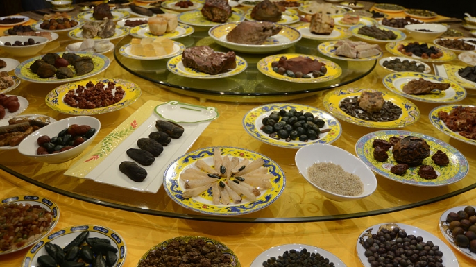 За първи път проведен през 1720 година, банкетът, наречен „Manchu Han Imperial Feast”, трябвало да е празненство по случай 66–ия рожден ден на император Kangxi. В продължение на 3 дни гостите, които наброявали 2500 души, се наслаждавали на стотиците литри вино и на 300 различни гозби. Освен кнедлите, патешкото и печеното свинско, в менюто имало селекция от ястия, известни като „32-та деликатеса“. Те включвали особени ястия като мечешки лапи, камилски гърди, птичи гнезда, леопардово месо и маймунски мозък. Празникът става толкова популярен, че по-късно е копиран няколко пъти по време на управлението на манджурската династия Цин. Дори днес някои от китайските ресторанти предлагат да организират подобно парти в стил, вдъхновен от тогавашните банкети.