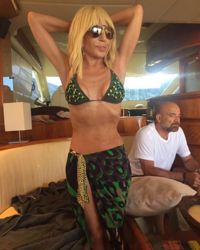 По-малката сестра на Джани Версаче обаче не обръща внимание на критиките и редовно споделя снимки из профилите си в "Инстаграм" и "Туитър". Последните предизвикаха любопитството на феновете. Те са от почивката на Донатела, а самата тя е по бански.