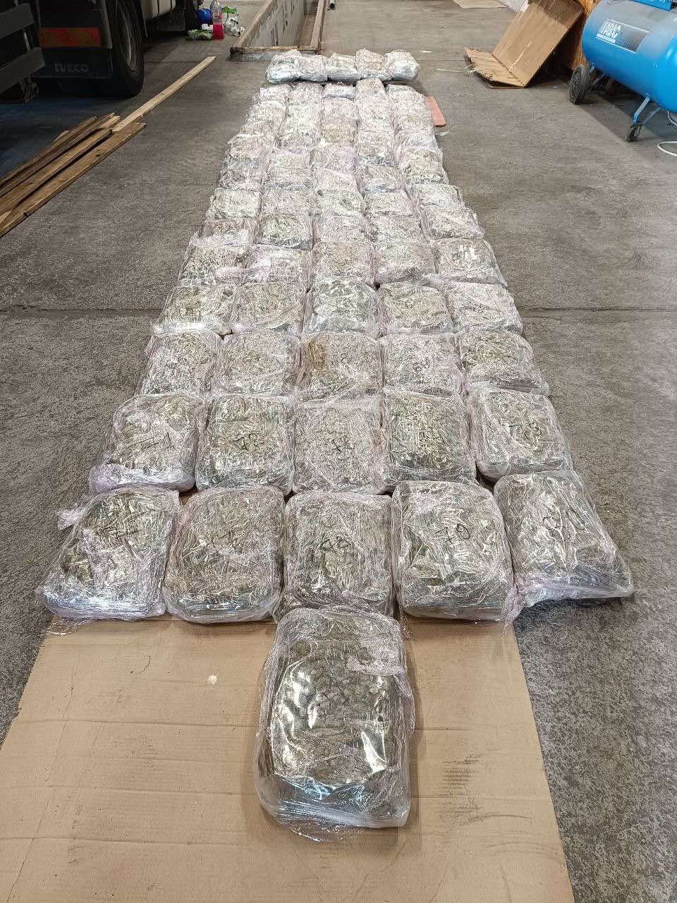 На 27.10.2023 г. митнически служители от отдел „Борба с наркотрафика“ спират за проверка влизащ в страната през ГКПП Кулата товарен автомобил с българска регистрация. Извършено е сканиране на превозното средство и товара, при което е набелязана зона с подозрителна плътност в дъното на ремаркето. При извършената щателна митническа проверка митническите служители установяват във фабрични кухини в пода на ремаркето 81 пакета с общо 91.5 кг суха тревиста маса, която при полеви наркотест реагира на марихуана.