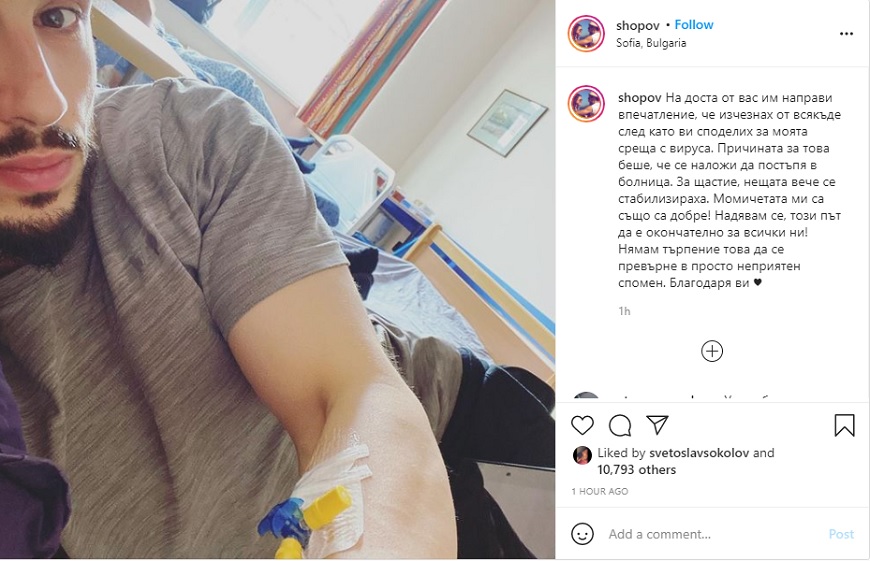 Наум Шопов е стигнал до болница заради COVID-19. Актьорът сподели това с последователите си в Инстаграм.