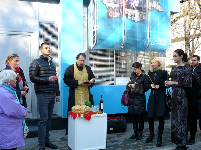 Бандити са подпалили централния офис на "България без цензура" в Стара Загора (на снимката отдолу- момент от откриването му-бел.авт.). Огънят е лумнал 2 часа след полунощ.