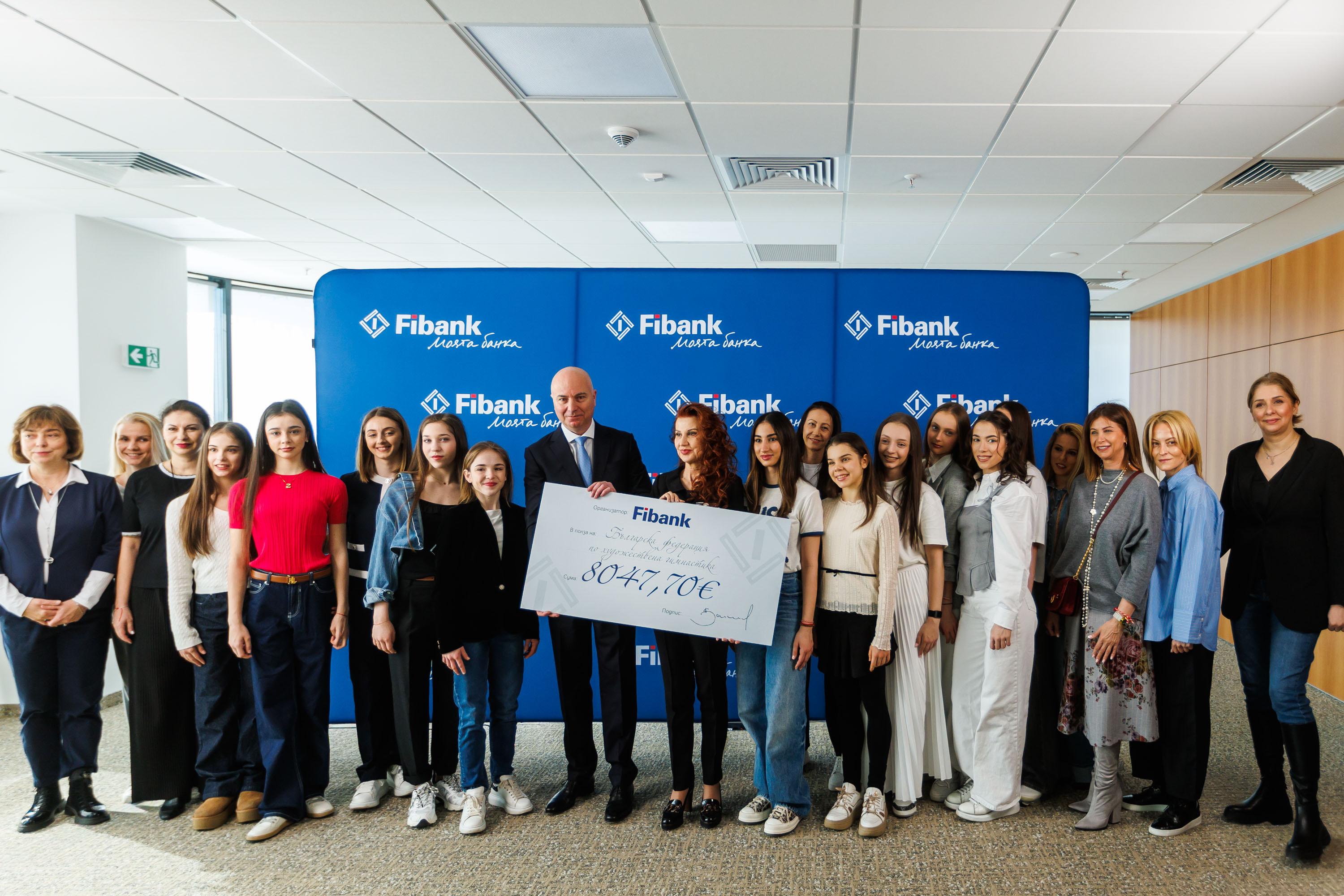 Главният изпълнителен директор и Председател на УС на Fibank - г-н Никола Бакалов, връчи на официална церемония чек за дарение на стойност 8047.70 евро на председателя на Българската федерация по художествена гимнастика (БФХГ) г-жа Илиана Раева. Сумата е събрана от ежегодната благотворителна кампания на банката, реализирана чрез продажби на корпоративния календар на Fibank за 2026 г.