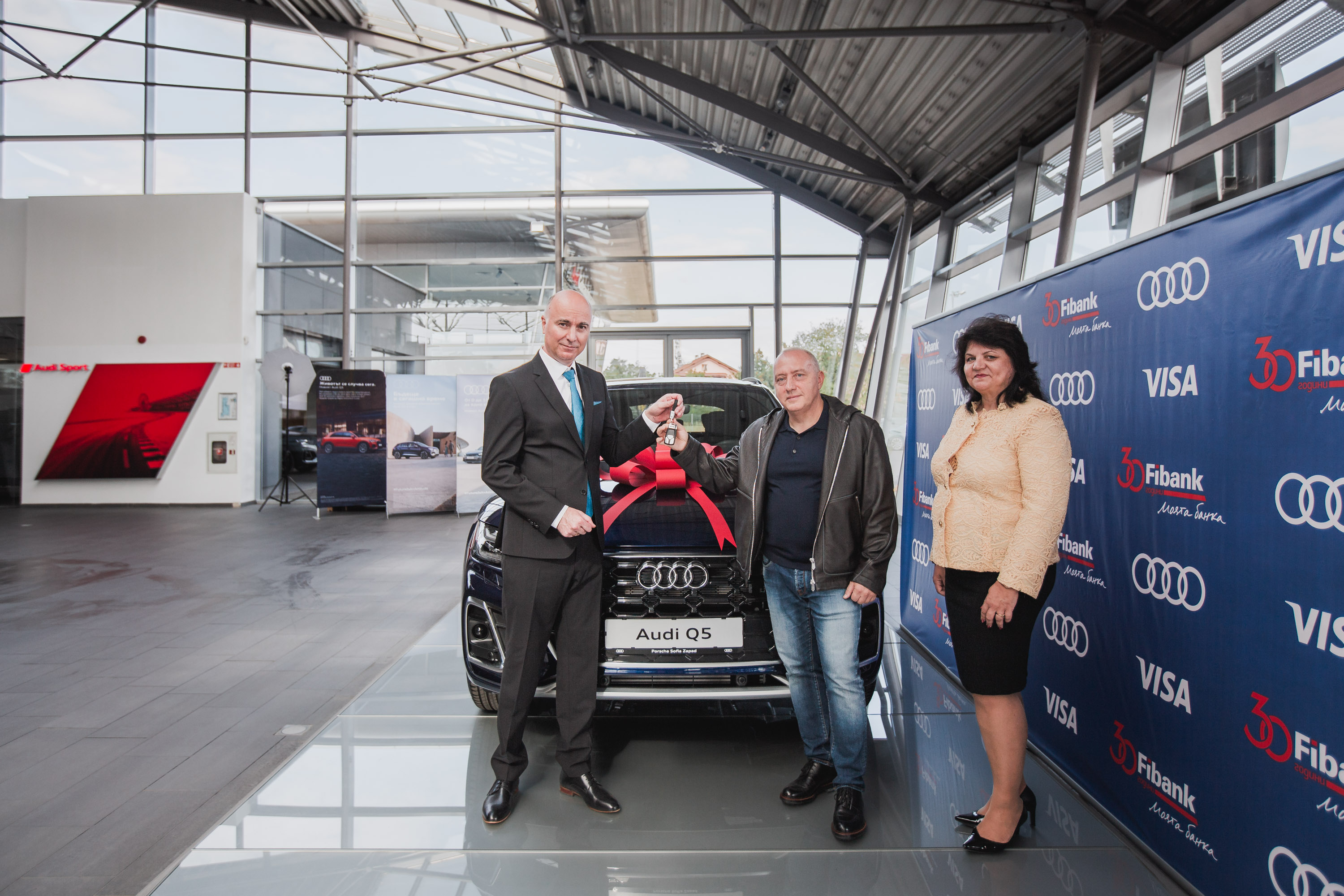 Fibank (Първа инвестиционна банка) предостави голямата награда на победителя в промоционалната кампания за дебитни и кредитни карти Visa, на изискана церемония в София. Председателят на Управителния съвет и Главен изпълнителен директор на Fibank, г-н Никола Бакалов, и г-жа Красимира Райчева, мениджър на Visa за България, връчиха ключа за авангардния plug-in хибрид Audi Q5 quattro на печелившия участник. В лотарията бяха изтеглени също и трима клиенти, които получиха електрически велосипеди.