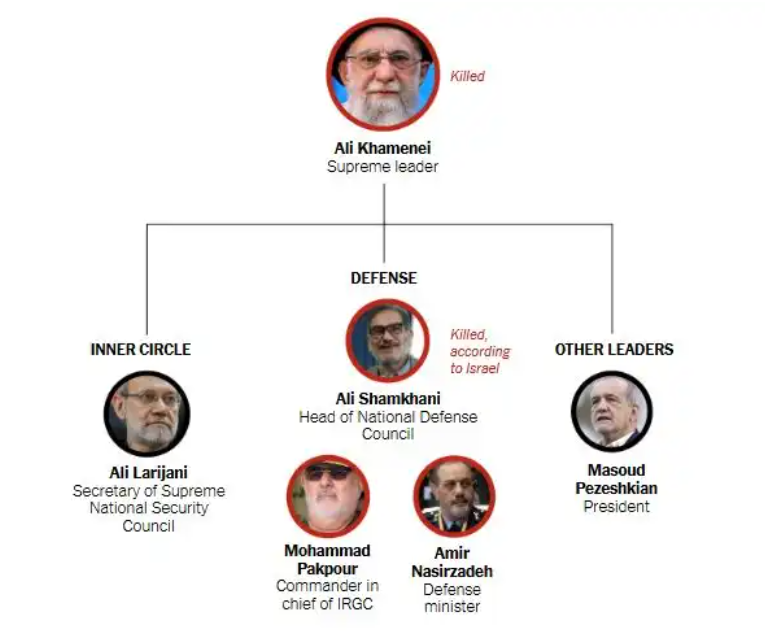 Според публикацията при кризисен сценарий ръководството на страната трябва да бъде поето от един от най-близките му съюзници – опитния политик Али Лариджани, който в момента е секретар на Висшия съвет за национална сигурност. Освен това Хаменей е упълномощил ограничен кръг от доверени политически и военни съратници да вземат ключови решения при война или при внезапна промяна в ръководството.