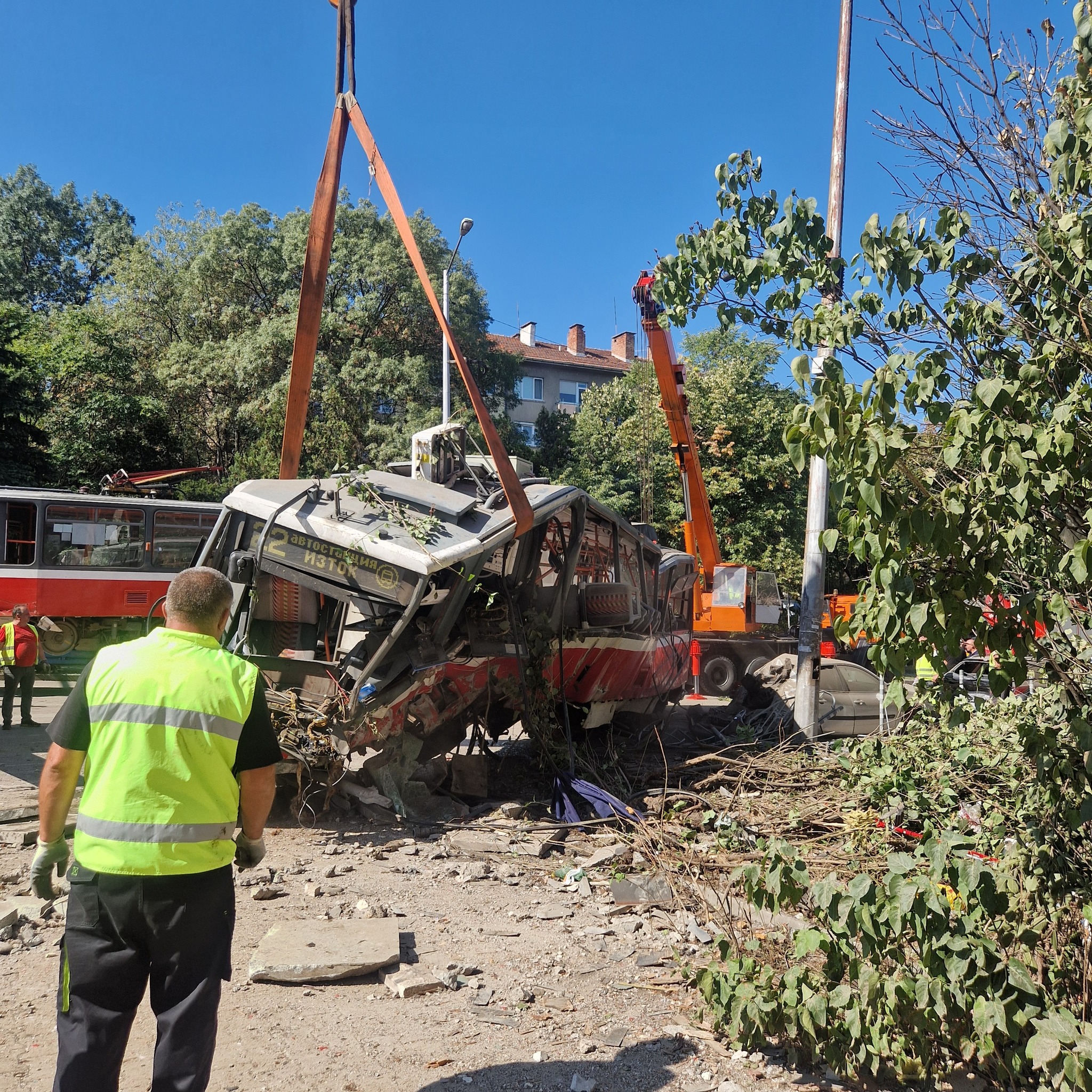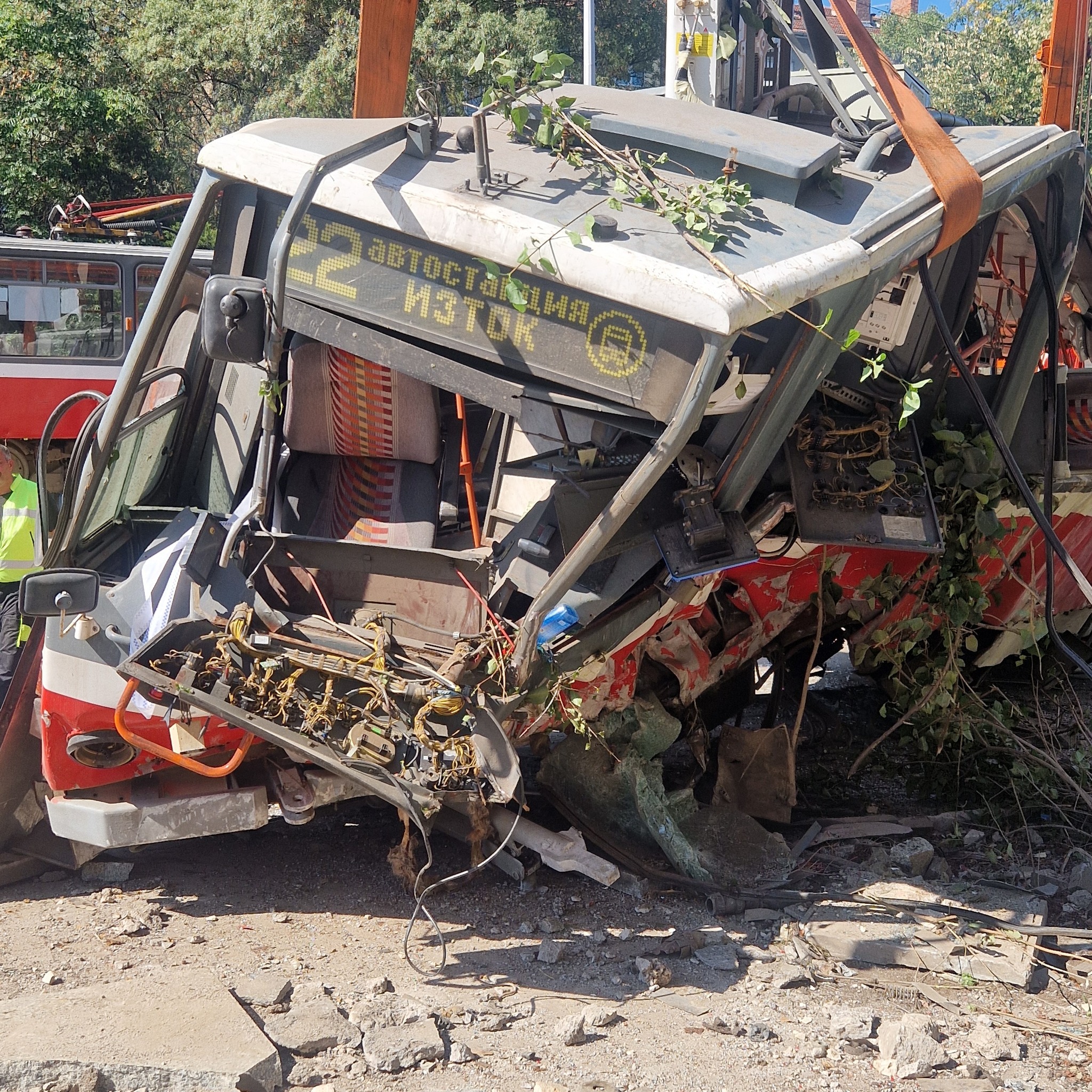 Брутални щети след мелето с трамвай в София от тази сутрин. Чудото е, че няма жертви при мощния удар на многотонната машина. Часове след нелепия инцидент трамваят бе вдигнат от релсите. Ала въпросите остават.
