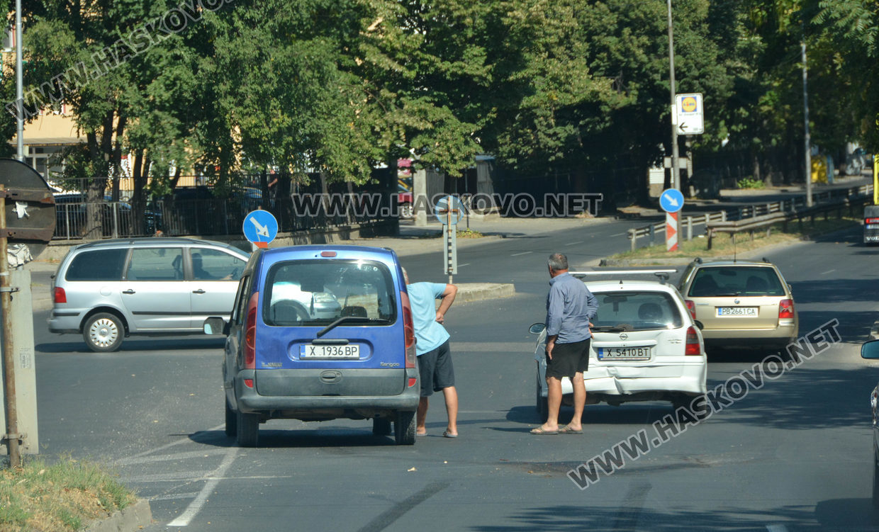 Колите се движели една зад друга. Отпред бил лек автомобил Опел Вектра. Водачът набил спирачки, за да завие наляво, когато отзад в него се забил лек автомобил Рено Канго.