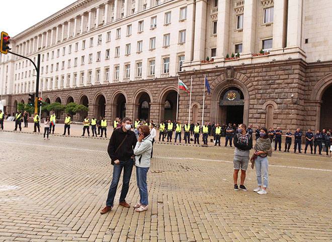 Няколко от тях са се насочили директно срещу кордона на полицаите пред Народното събрание и са счупили прозорец на новата сграда на Народното събрание.