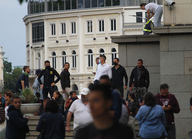 Камъните пък са започнали да летят, веднага след като се е стъмнило, а прииждат и маскирани типове с шапки и шалове.