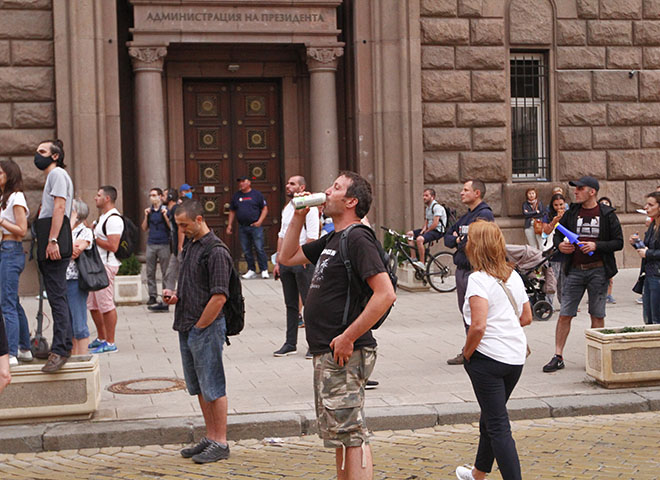 Агитки от биячи и агресивни типове за поредна вечер са се събрали на метежа на Гробовното трио под юмрука на Румен Радев. Те отново са блокирали незаконно движението по бул. "Цар Освободител", въпреки че не са много.