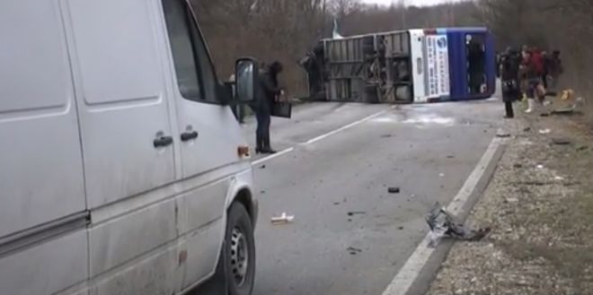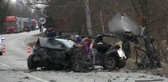 Колата е със софийска регистрация. Тя е смачкана до неузнаваемост, по думите на полицай, който е на мястото на инцидента. Автобусът се е преобърнал настрани на пътното платно.