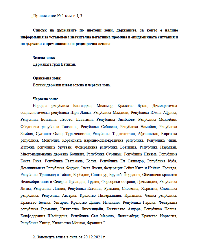 Актуализираха списъка на държавите по цветови зони за влизане в България (ДОКУМЕНТ)