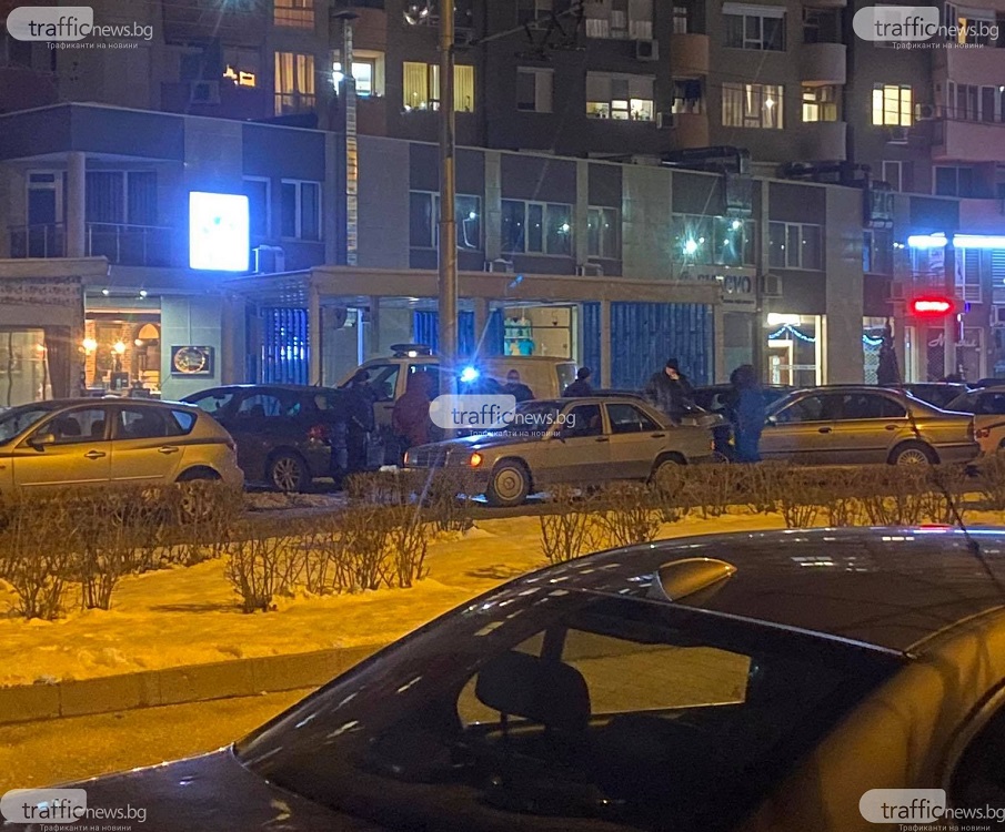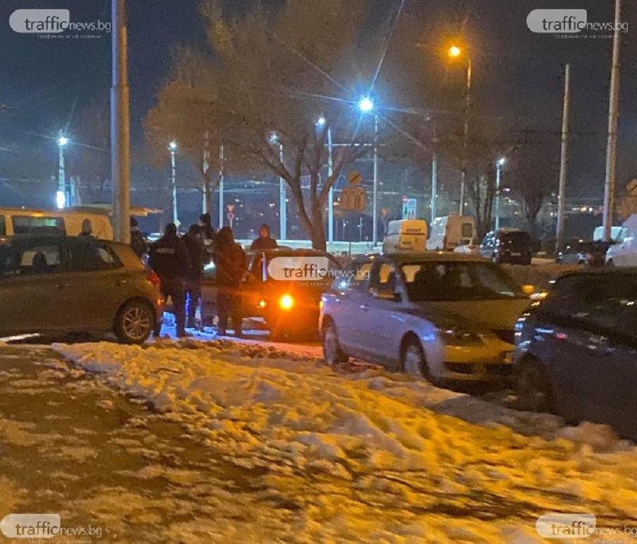 Униформени са спрели и претърсват лек автомобил "Мерцедес" в ЖР "Тракия". Провеждат се и лични обиски на няколко души, вероятно пътували в колата.
