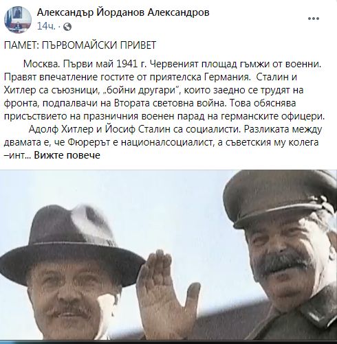 "Днес неокомунистите в 45-то Народно събрание на България, водени от своя „вожд и учител” в президентството, ни готвят диктатура. Показаха си те вече рогата. Впрочем една от първите задачи на „новата власт” след 9 септември 1944 г. е била да пусне от затвора престъпниците – крадци и убийци. Днес се действа по-рафинирано: просто се ликвидират органите, които имат за задача да преследват крадците на едро – специализираните прокуратура и следствие. Ликвидира се и Антикорупционната комисия, за да не се отнема придобито имущество и финансови средства от престъпна дейност на стойност над 3 млрд. лева. Лобира се за олигарсите. Но тези действия на неокомунистите в настоящия парламент, както и бързината, с която проруският ни президент подписа в вчера и обнародва в „Държавен вестник” с днешна дата, законодателното недоносче "нов Изборен кодекс", красноречиво говорят, че над България се спуска мрак. Това е водещата новина за България на 1 май 2021 година", твърди Йорданов.