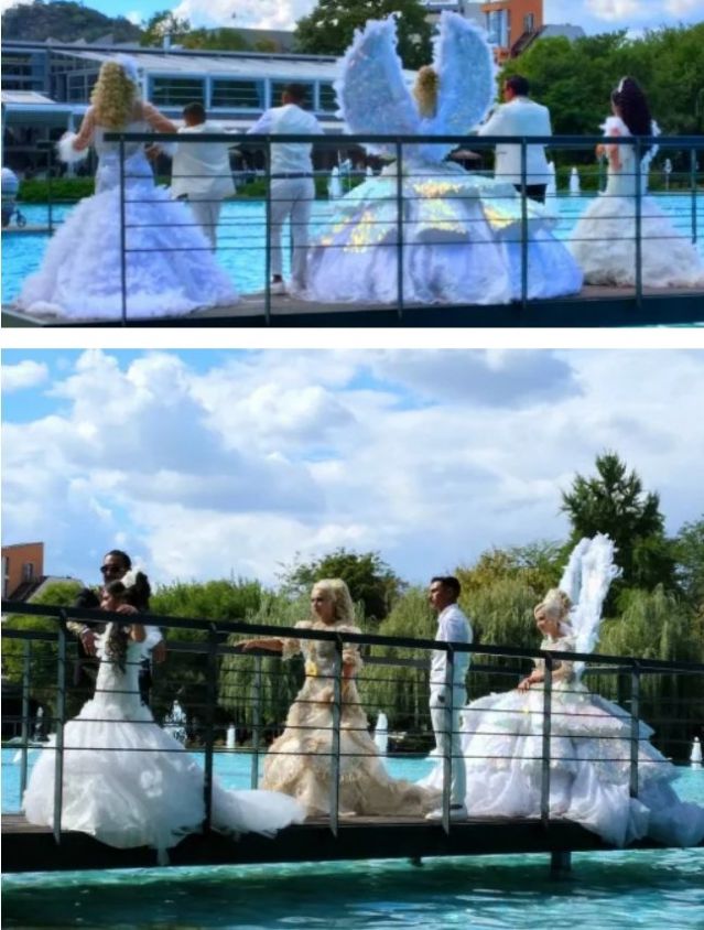 На някои снимки се вижда, че има още едно момиче, което носи булчинска рокля.