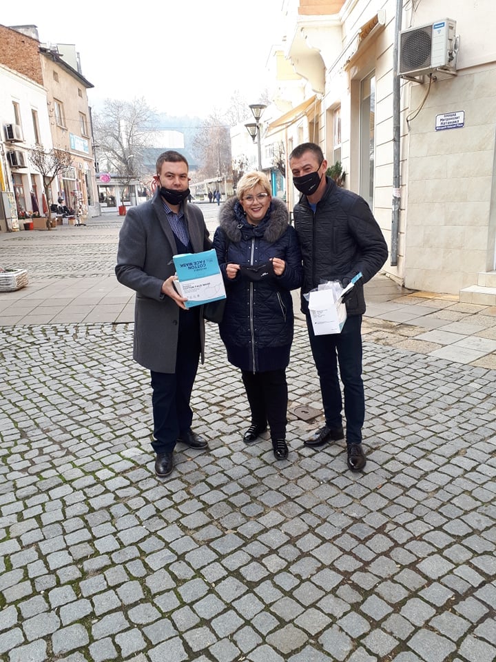 Висококачествените маски за многократна употреба са изработени по инициатива на Андрей Новаков и бяха раздадени безплатно на всички желаещи. В акцията в Гоце Делчев се включиха общинският ръководител Николай Джингаров и общински съветници на партията. Само в Благоевград бяха раздадени над 800 от предпазните средства с послание „Това не е маска. Това е грижа”.