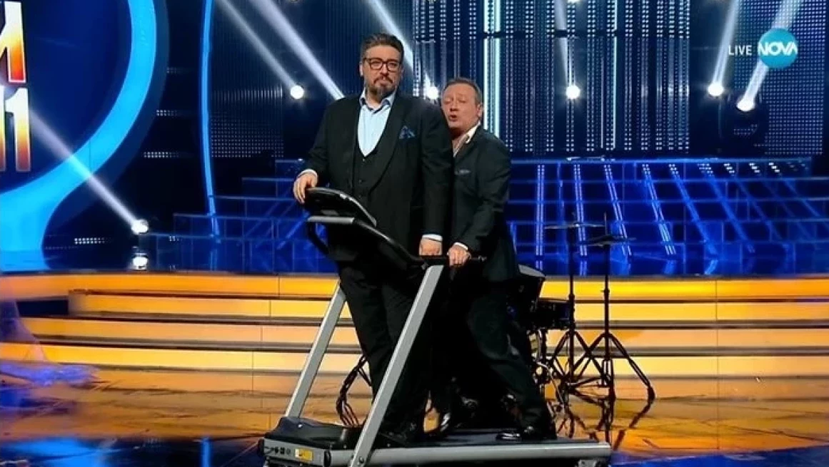 В неделя вечерта актьорът беше във вихъра си, шегуваше се с всичко и всички и дори не се притесняваше да изиграе интимна близост с друг мъж. Рачков и партньорът му водещ на предаването Герасим Георгиев-Геро се награбиха буквално върху фитнес пътека за бягане. Първоначално Геро изненада Рачков отзад, а впоследствие ролите се размениха.