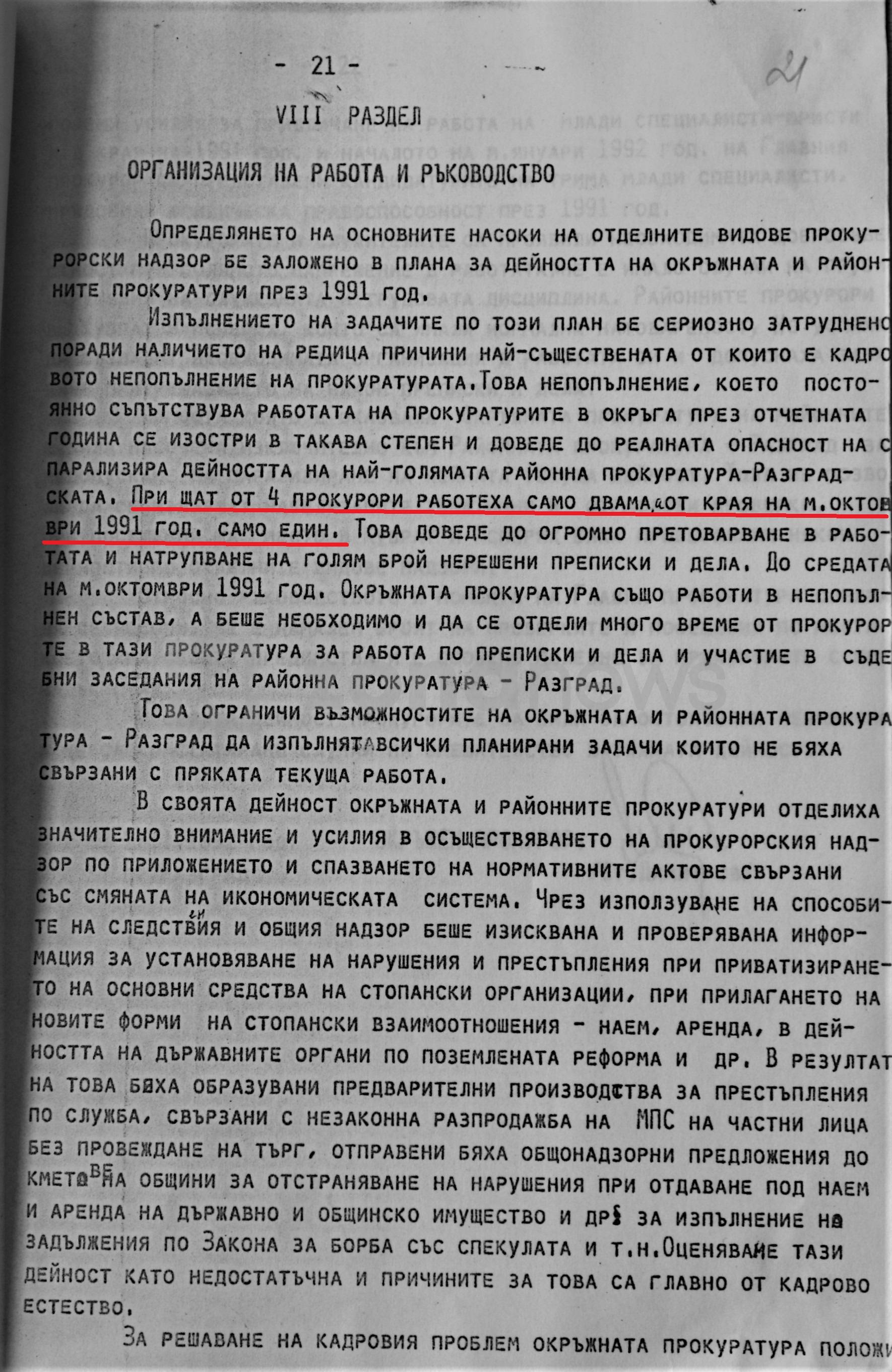 Отчетен доклад за работата на Районна прокуратура-Разград през 1991 г.
