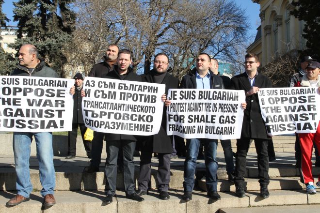 I PROTEST AGAINST THE US PRESSUDE FOR SHALE GAS FRACKING IN BULGARIA!“ /Аз съм българин и съм против добива на шистов газ в България/, „JE SUIS BULGARIAN  I OPPOSE THE WAR AGAINST RUSSIA !“ /Аз съм българин и съм против война с Русия/, „JE SUIS BULGARIAN I AM AGAINST THE TTIP!“ /Аз съм българин и съм против Трансатлантическото търговско споразумение/, съобщиха от пресцентъра на партията.