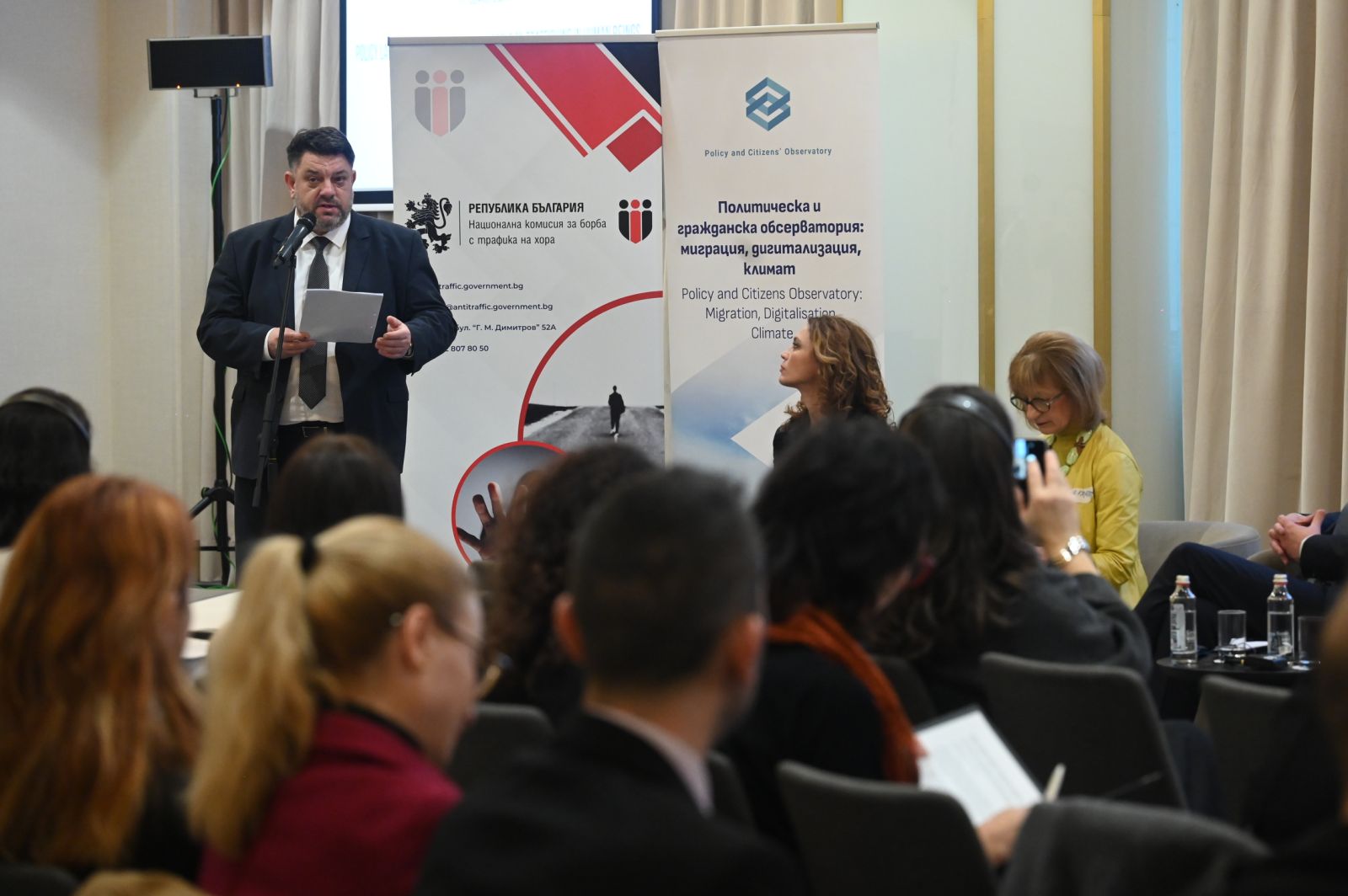 В речта си председателят на Националната комисия за борба с трафика на хора подчерта, че трафикът на хора не е само криминален проблем, а дълбоко социално и икономическо явление, което засяга най-уязвимите групи и предизвиква институциите.