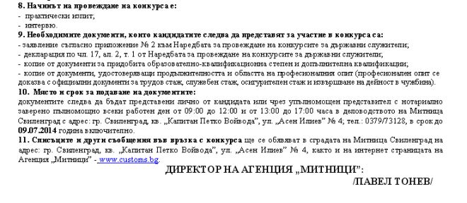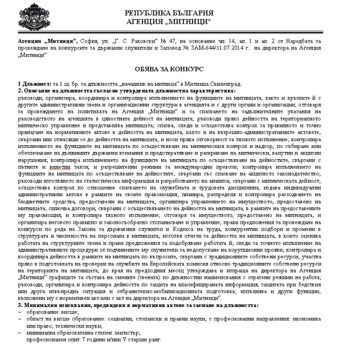 На 24 декември м.г., точно между Коледа и Нова година, беше обявен конкурс за шефове на осемте районни митници.