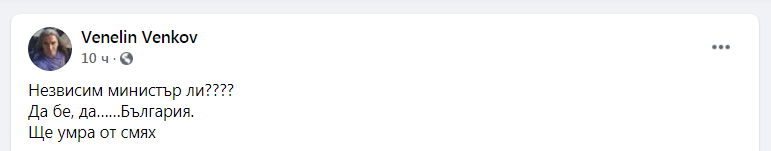Ето какво написа на страницата си във Фейсбук Венелин Венков: