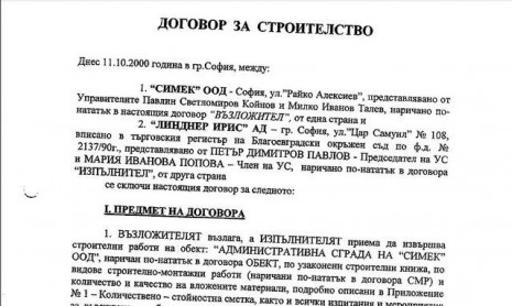 Бареков представи документи, които според някои от текстовете в Наказателния кодекс уличават президента в търговия с влияние и пране на пари. През 2000 г. фирмата, която той представлява "Линднер Ирис" АД, е подписала договор с фирма "Симекс" ООД, представлявана от Павлин Койнов и Милко Талев. Споразумението е на стойност близо 660 000 лева и в него има клауза за 9% норма на печалба, а той взима 11% комисионка, с което нарушава закона. Изпълнител на строително-монтажните работи е "Линднер". Срокът за изпълнение е от 300 дни, а всички плащания е предвидено да стават по банков път.