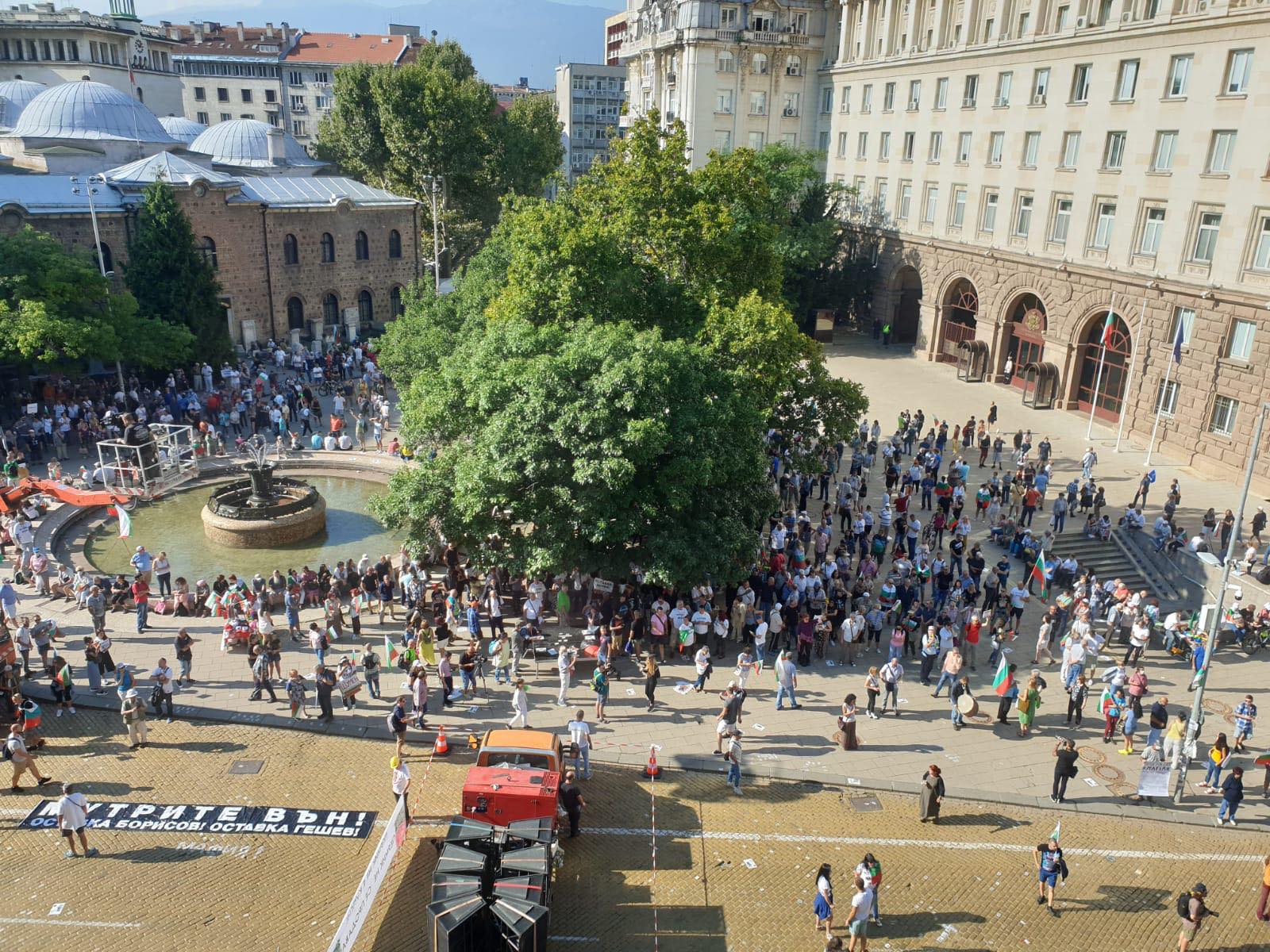 Вижда се колко са хората на място, но пък провокации не липсват. Вече има арестуват за носене на нож, а по-рано МВР откри куп скрити от метежниците остриета, тръби, павета, камън и самоделен взрив в градинките около площада и в шахти.