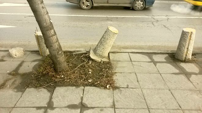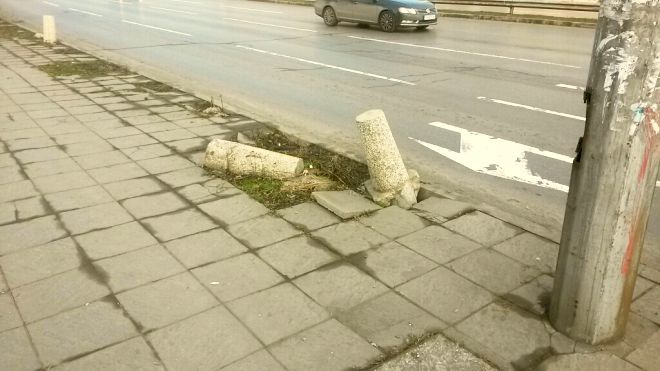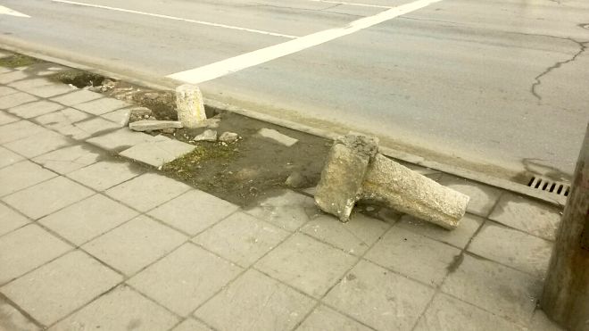 Проверка на мястото показа, че вече почти 2 седмици никой не си е направил труда да възстанови бетонните стълбчета, които колата събори и се обърна по таван. Нещо повече, никой дори не си е направил труда да отстрани тежкия бетон от един от най-натоварените булеварди в столицата.