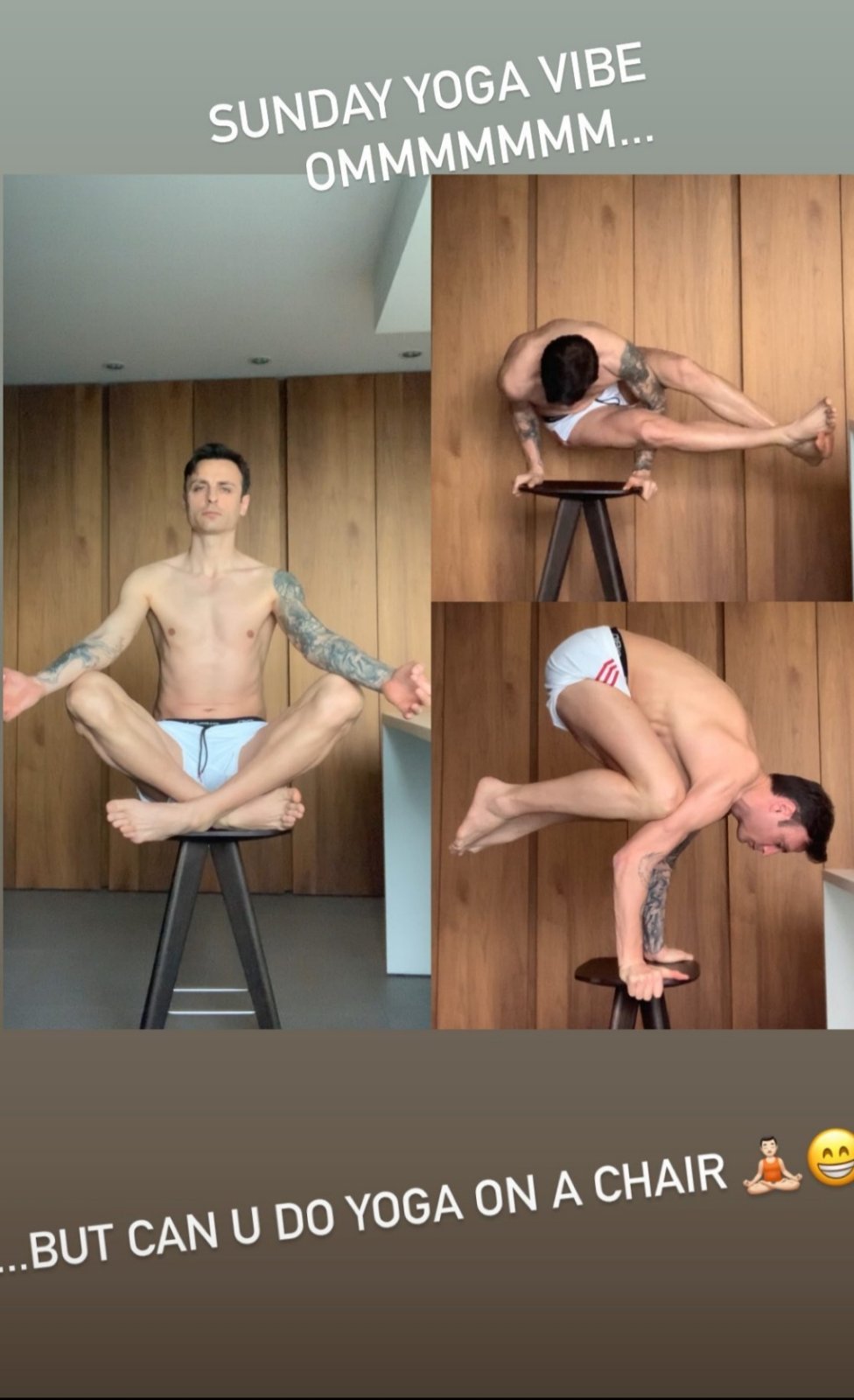 Той показа как прави йога върху стол, а на всичко отгоре бе само по оскъдни шорти.