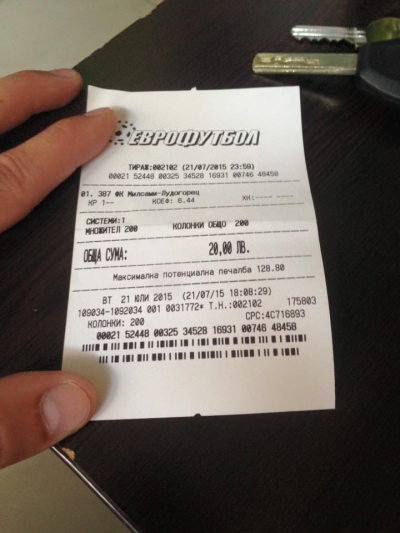 Лимона се похвали с успеха си в социалната мрежа "Фейсбук". От фиша се вижда, че Принца на Пловдив е заложи 20 лева при коефициент 6.44 и е прибрал печалба от 128 лева.