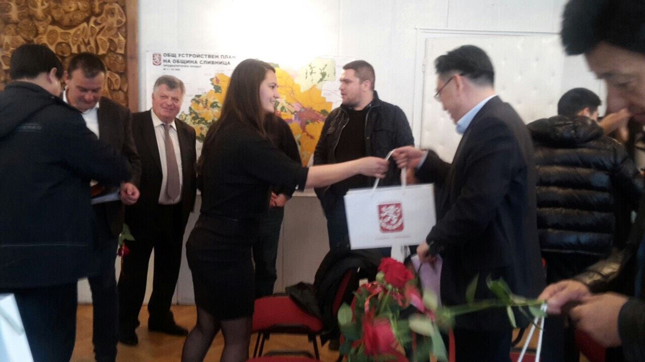 В община Сливница кметът Васко Стоилков в началото на срещата подари по една българска роза на всеки от китайската делегация. Той представи възможностите за бизнес в община, както и свободните за инвестиции терени. Стоилков акцентира и върху чистата природа и устойчивото развитие в района.