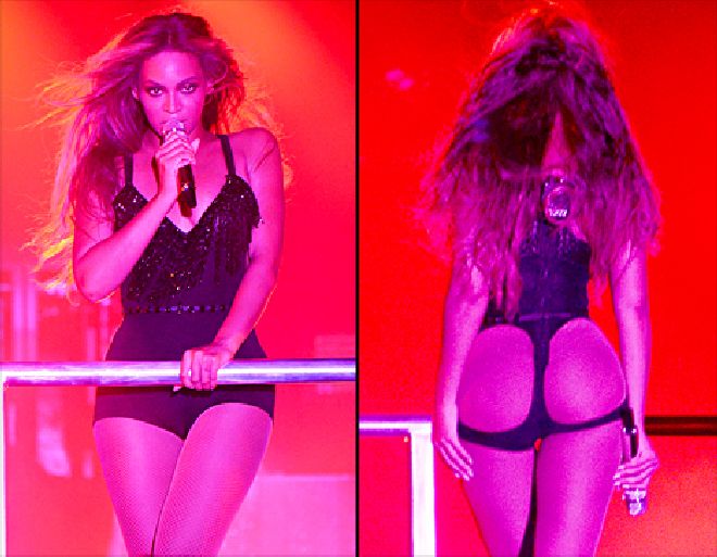 Един от тях обаче бе по-специален от другите, защото показваше дупето на изпълнителката. Бодито, което направи впечатление на всички е по модел на една от любимите марки на Бионсе - Живанши (Givenchy). Как бихте коментирали избора на певицата?