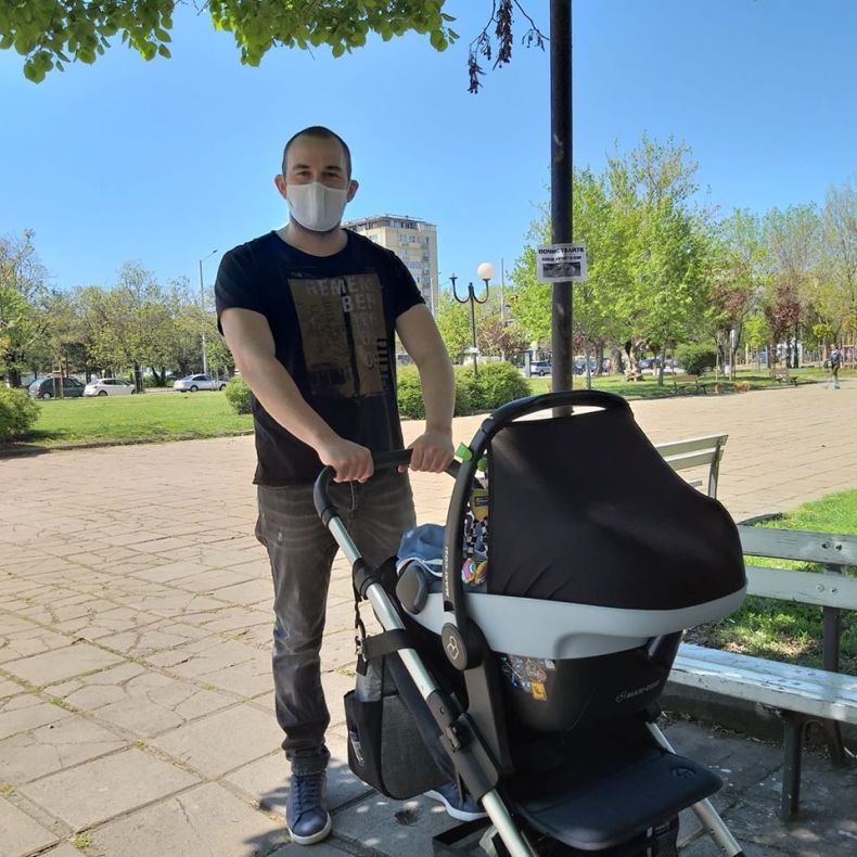 Боби Ваклинов изведе сина си на първа разходка, след като столичните паркове бяха отворени, видя ПИК.