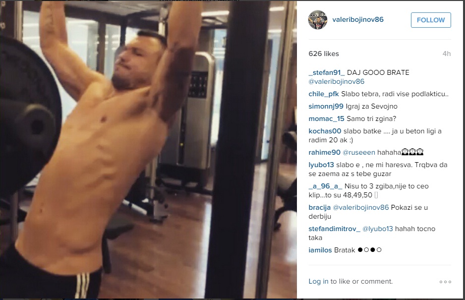 Националът качи клипче в една от социалните мрежи, на което усилено се набира във фитнеса.