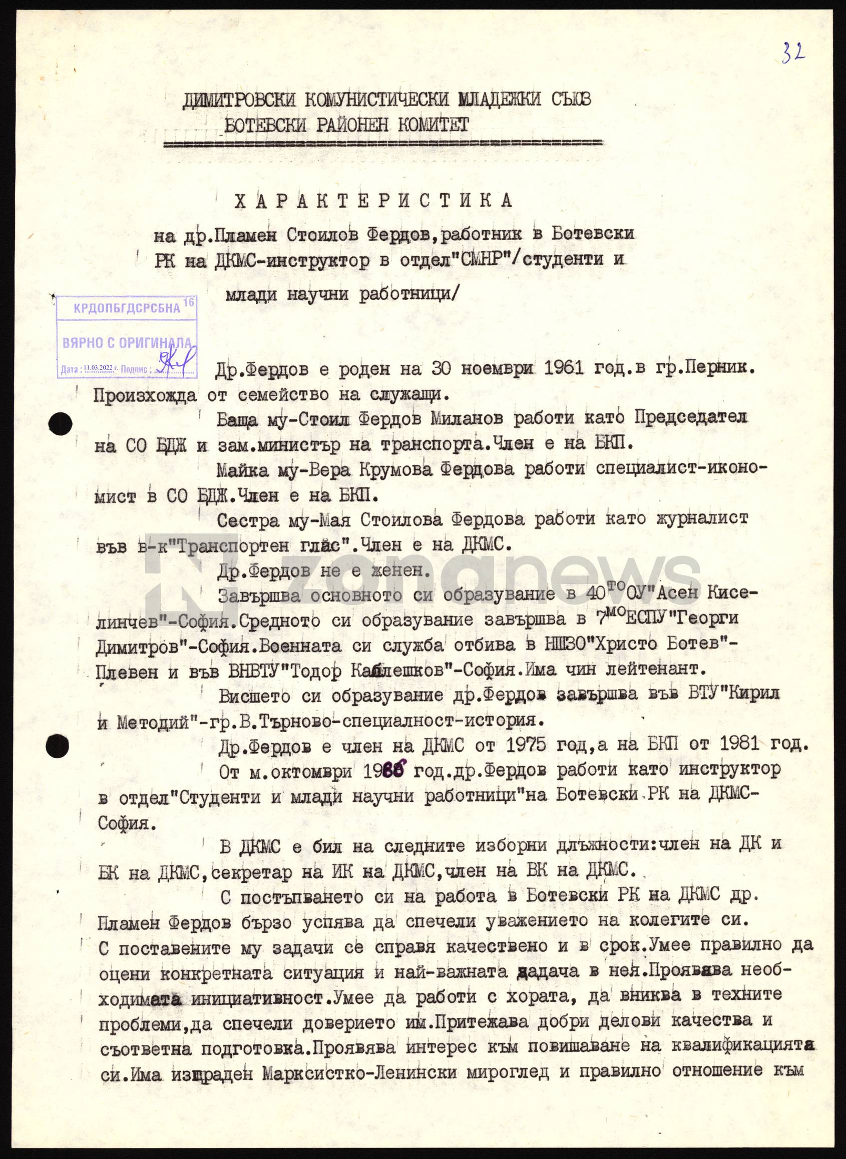 Ето и цялото кадрово дело на Пламен Фердов. Нека погледнем с какво е привлякъл вниманието на бившия комунистически следовател Бойко Рашков, пише сайтът "Zonanews“.
