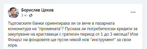 Търговските банки ориентираха ли се вече в пазарната конюнктура на „промяната“? Пуснаха ли потребителски кредити за закупуване на краставици с гратисен период от 1 до 3 месеца?