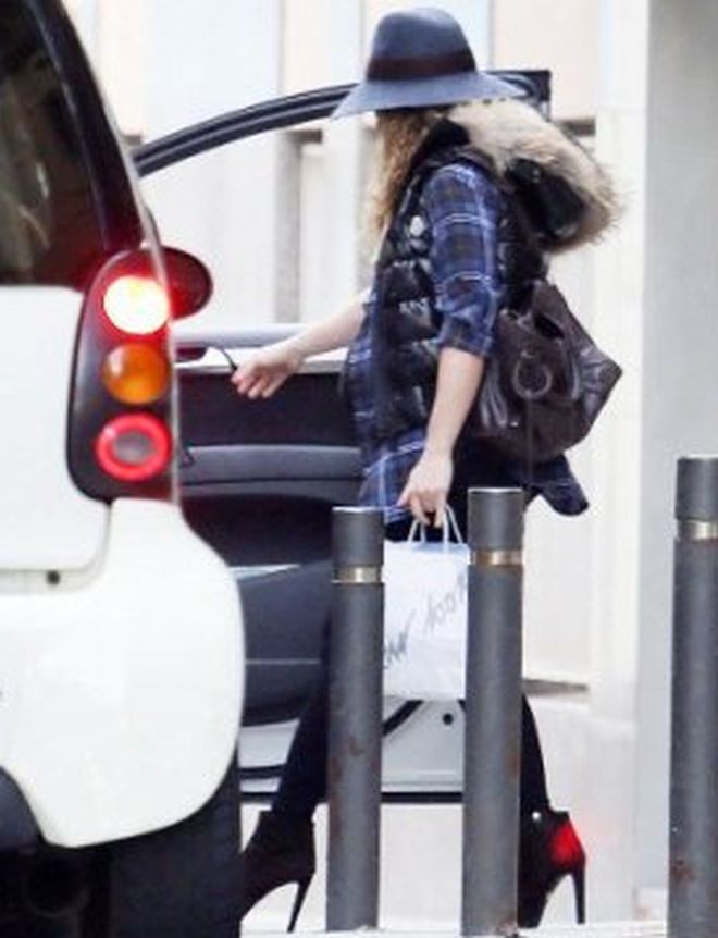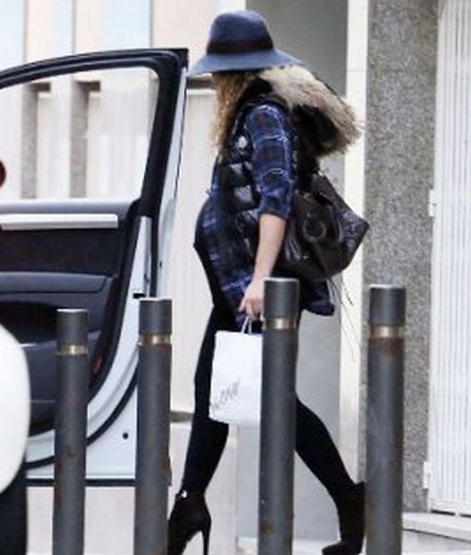 Въпреки все по-наедряващото си коремче обаче си личи, че певицата не се отказва от модния си стил, тъй като беше обута в убийствени черни боти на висок ток.