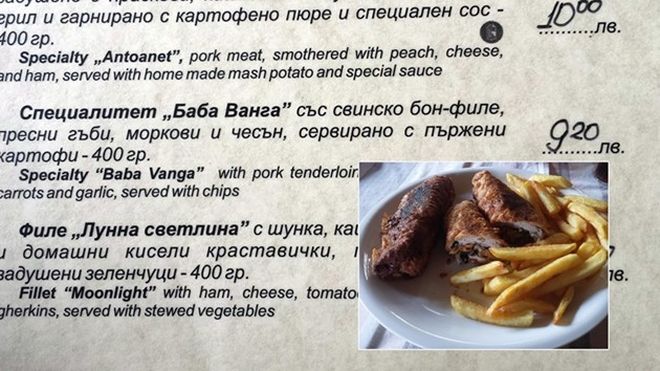 За такова меню съобщи и очевидец, който е ходил преди месец в Берковица, където видял и хапнал въпросния "специалитет" с името на известната ясновидка. "Бях удивен да видя в менюто нещо, което се казва "Баба Ванга". Това е неуважително и доколкото знам, дори не е законно", обясни той.